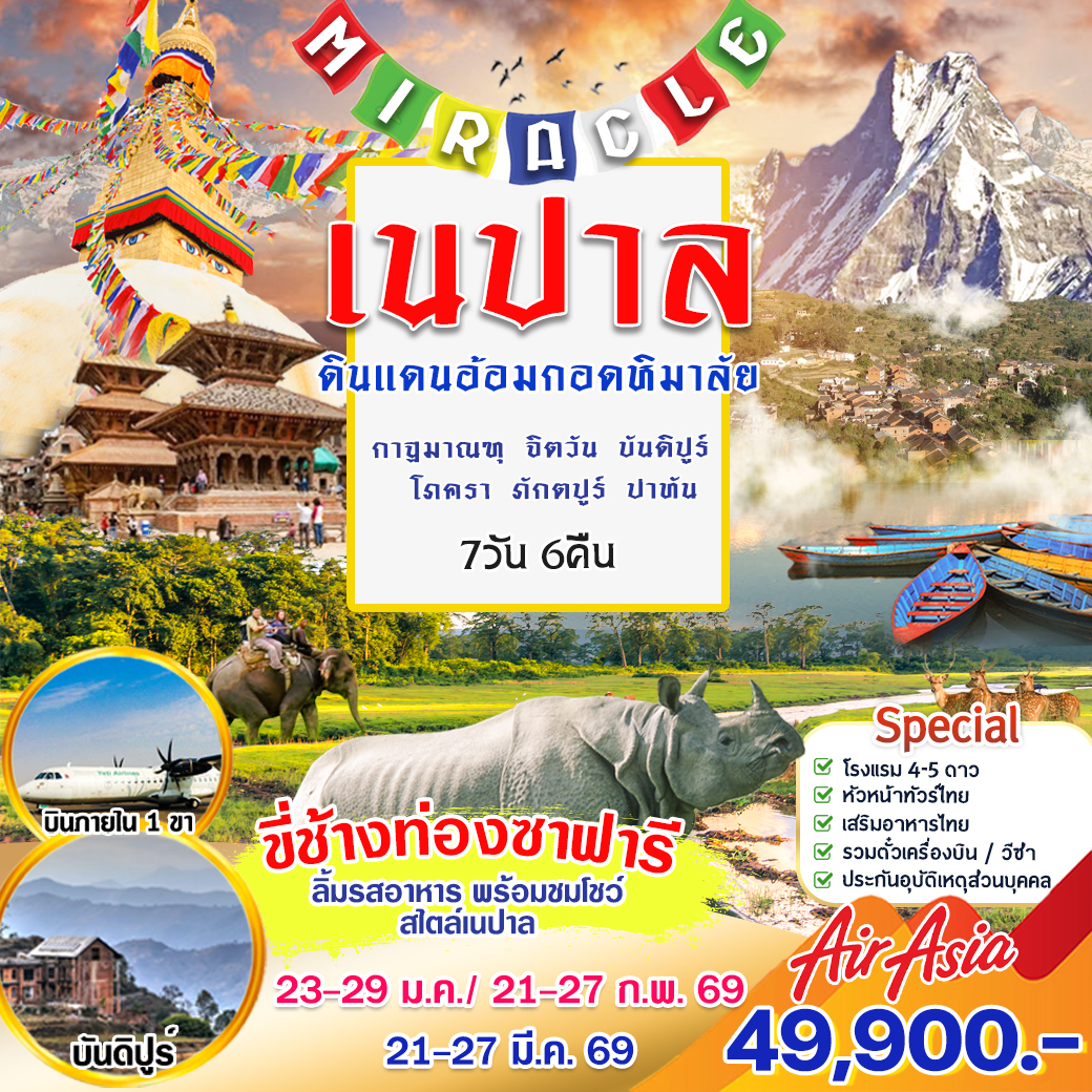 ดินแดนศักดิ์สิทธิ์กลางอ้อมกอดหิมาลัย สัมผัสสถาปัตยกรรมอันวิจิตรงดงาม กาฐมัณฑุ โภครา ภัคราปูร์ ปาทัน นากาก็อต *โชว์สุดพิเศษ!! *ลิ้มรสอาหารเนปาลีแท้ ๆ *บินภายใน 1 ขา *พักโรงแรมบนเขา ชมวิวหิมาลัยสุดฟิน